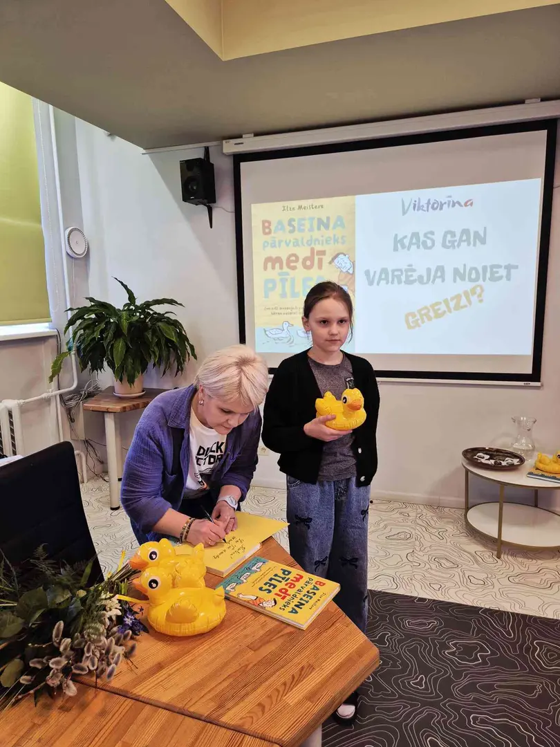 Autores grāmata bija viena no visaugstāk vērtētajām kategorijā 9+ ne tikai kopvērtējumā, bet arī mūsu skolā. Rakstniece bērniem bija sagatavojusi aizraujošu viktorīnu par savu grāmatu. Zinošākie saņēma balviņas – pīlītes un katrs tika pie skaistas uzlīmes.