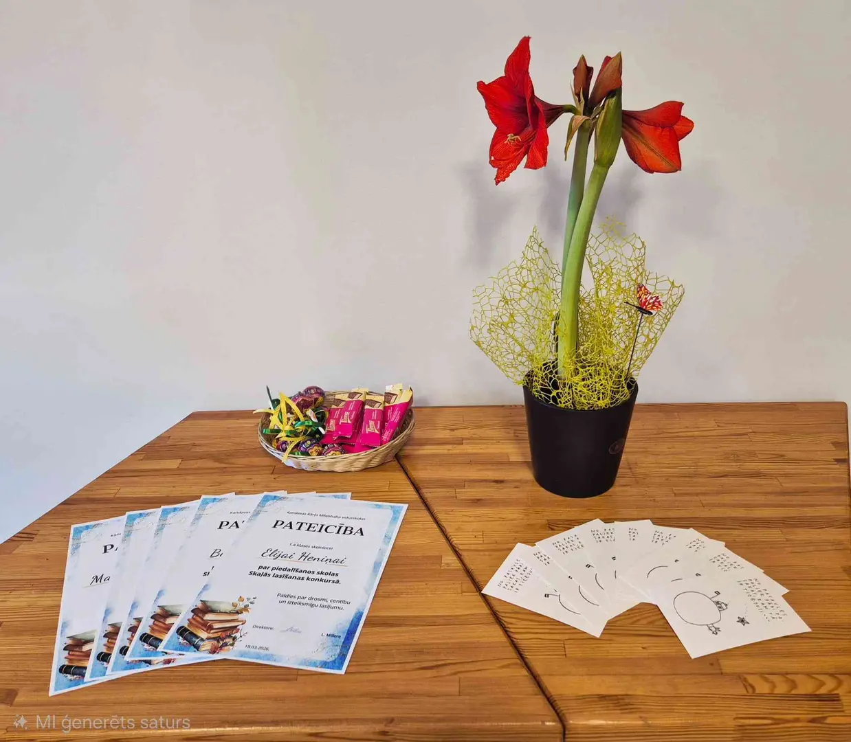 Pateicību par dalību konkursā saņēma Elija Heniņa (1.a), Beāte Heniņa (1.b), Madara Lipska (2.a), Ulla Zilberta (2.b), Annija Meiere (3.a), Emīls Priednieks (3.b), Marks Vīndedzis (3.b), Laura Bernatoviča (4.a), Elza Ozola (4.b).