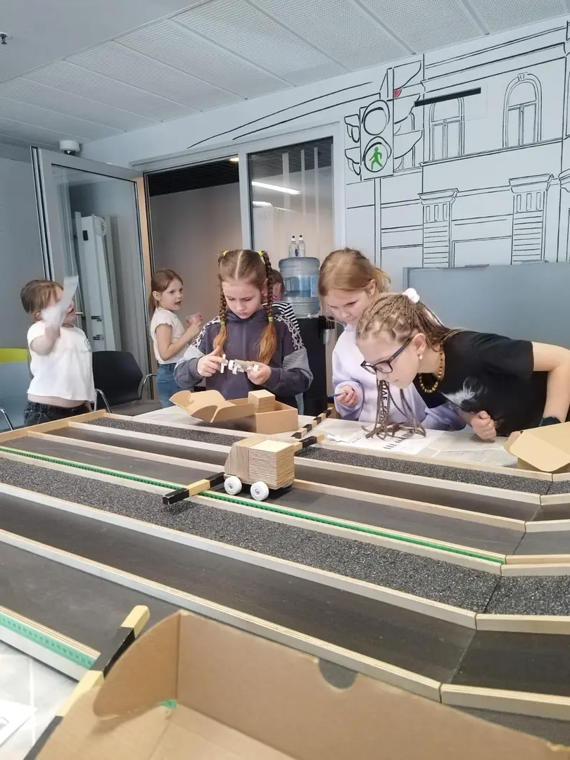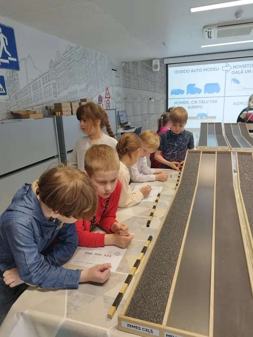 Tā bija tehniski radoša nodarbība par kustību, spēkiem un drošību satiksmē. Pirmajā daļā vadītāji stāstīja un rosināja skolēnus domāt par kustību un dažādiem kustību ietekmējošiem faktoriem, tai skaitā fizikāliem spēkiem. Pārrunāja, kā kustība notiek ceļu satiksmē un kā kustēties droši.